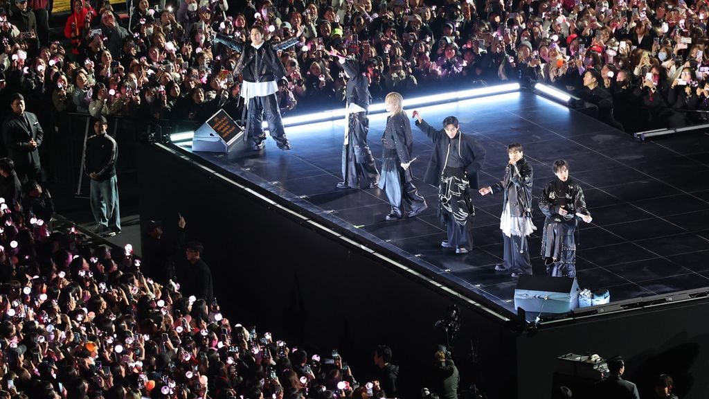 De show begon met hun klassieke hit “Spring Day”, een symbolische keuze die verwees naar het lange wachten en de uiteindelijke reünie. De zeven leden – RM, Jin, Suga, J-Hope, Jimin, V, en Jungkook – verschenen op het podium in hun kenmerkende formatie.